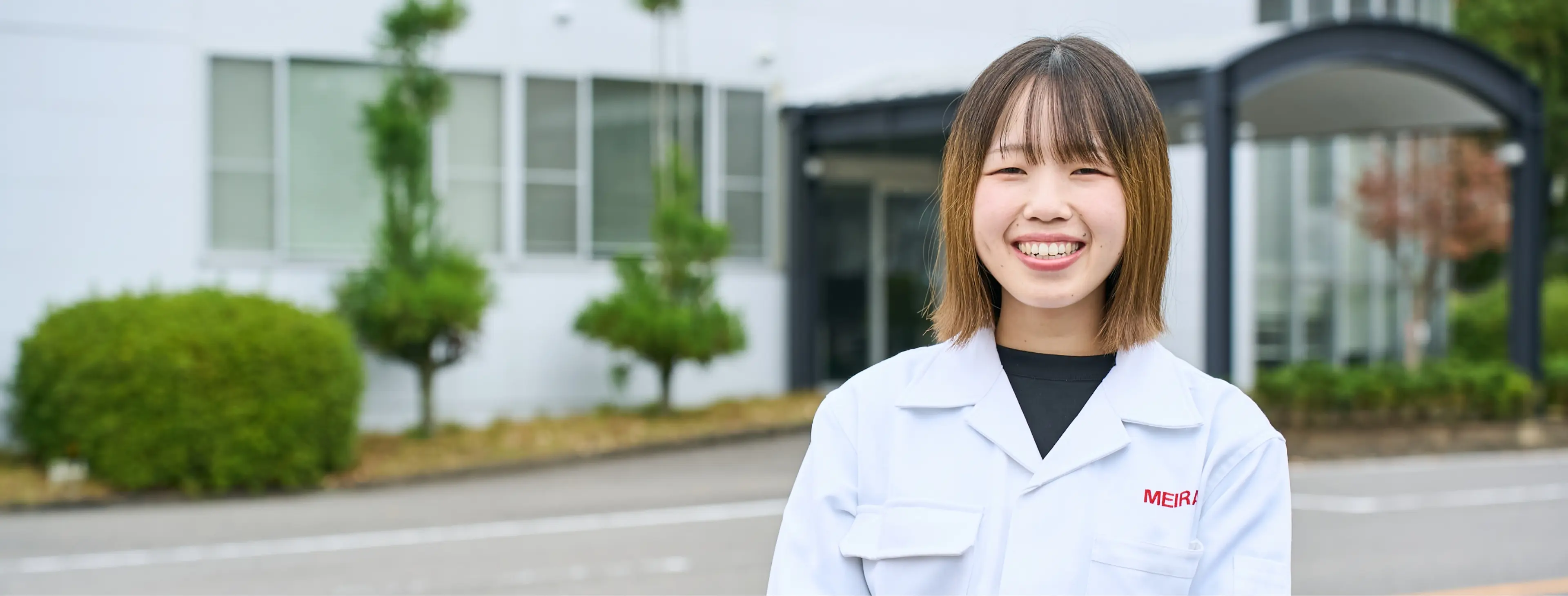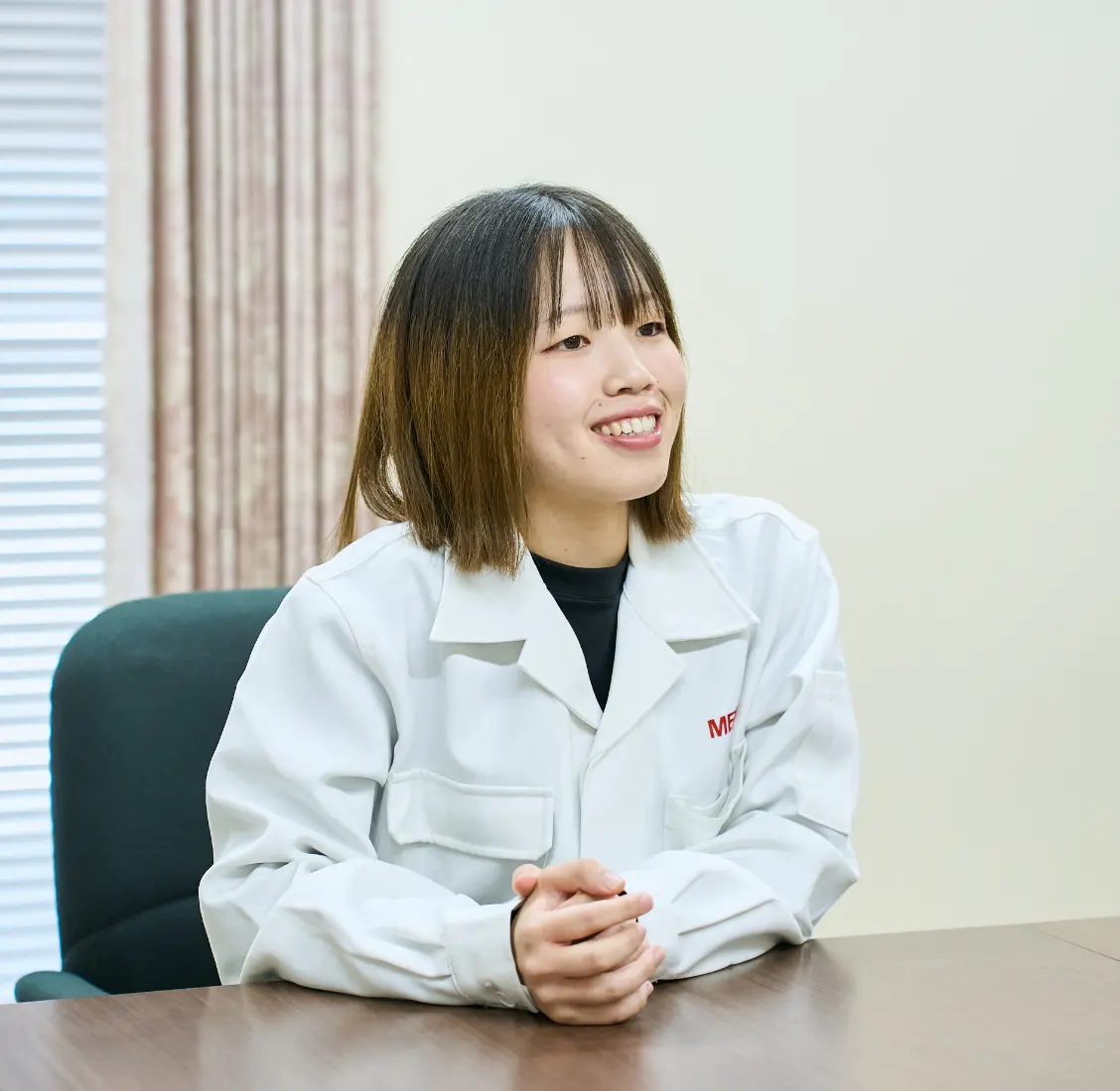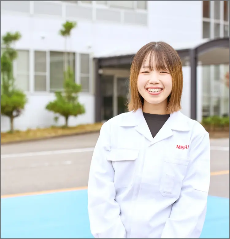 生まれも育ちも関市で、2 人いる兄も地元での就職という環境だったこともあり、高校時代から「自分も地元の関で働きたい」と考えていました。高校の先生に就職の相談をしたとき、「働きやすくていい会社があるよ」と紹介してもらったのがメイラです。夏休みに職場見学に参加し、工場のラインを見せてもらいながら説明を聞く中で、「ここにしかない技術を持っている会社なんだ」と感じました。土日休み・長期連休もしっかり取れて、安心して働ける環境があること。そして、技術力の高いメーカーで自分も成長していけそうだと思えたことが、入社を決めた大きな理由です。高校卒業後に労務担当として入社し、異動をきっかけに採用を担当するようになってから約2年。今では採用のほか、人事企画全般に携わっています。