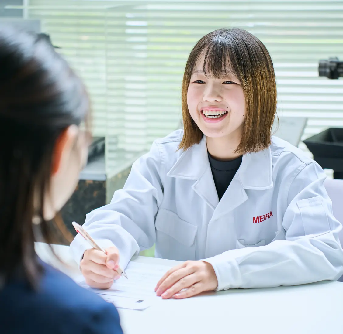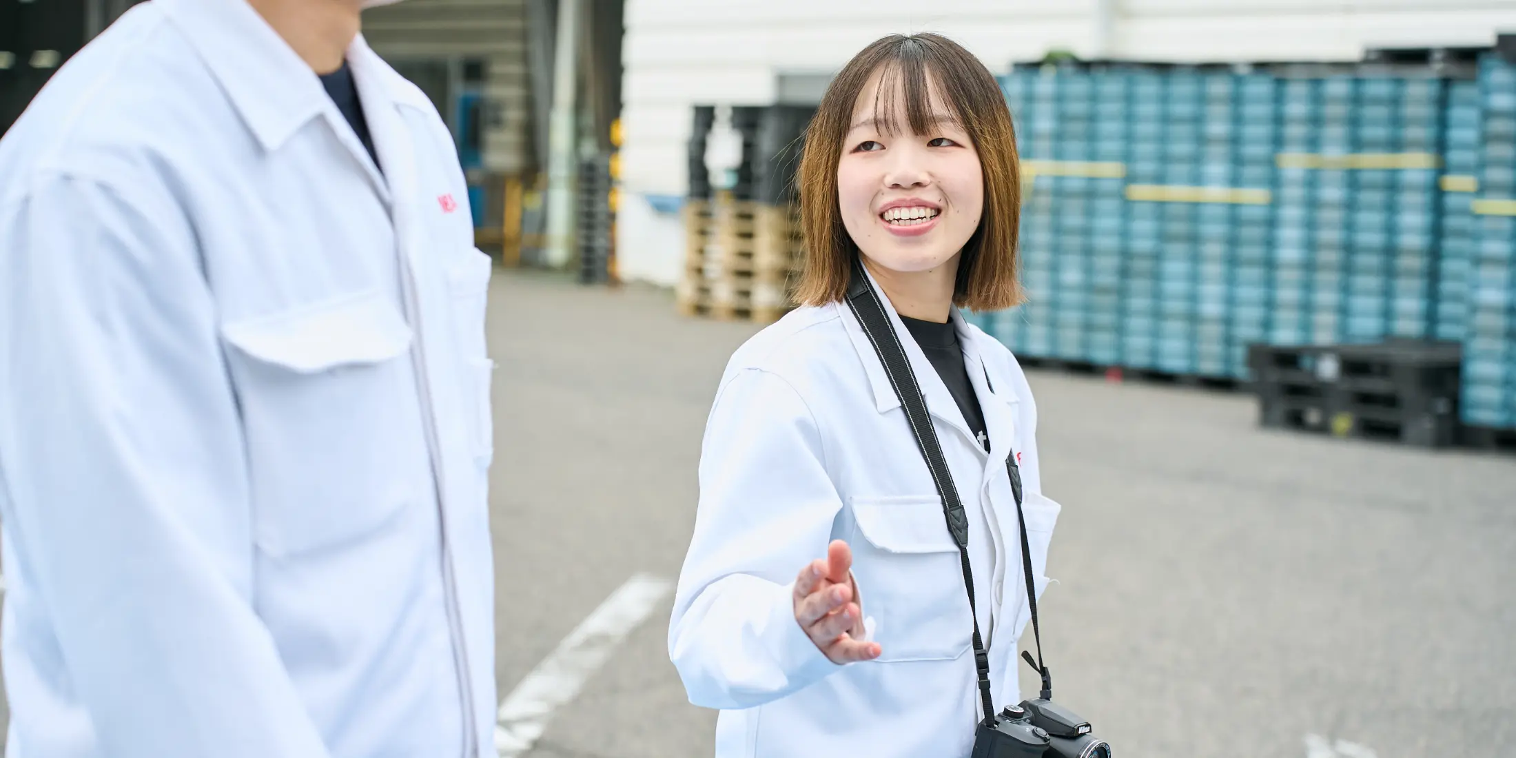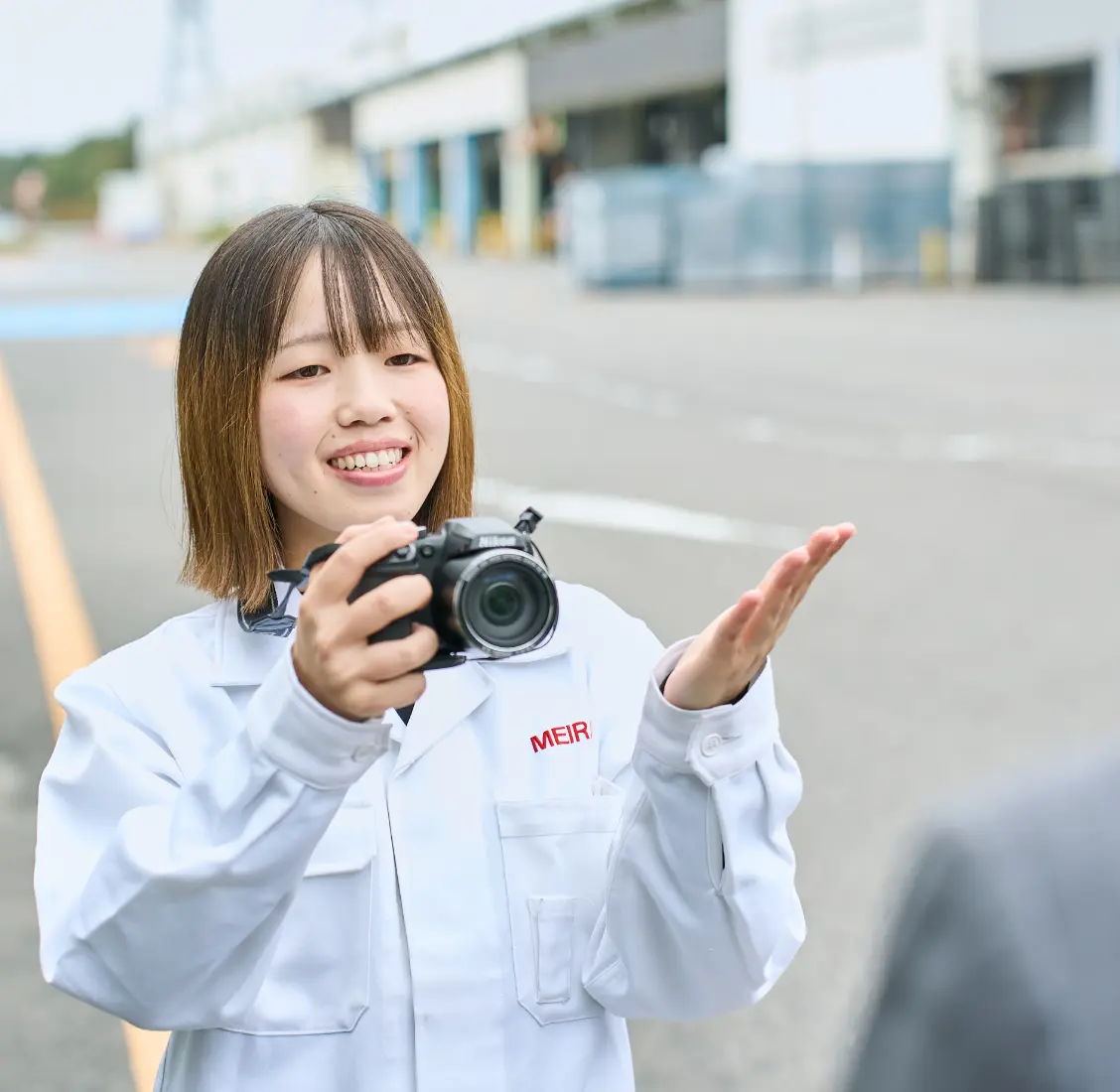 生まれも育ちも関市で、2 人いる兄も地元での就職という環境だったこともあり、高校時代から「自分も地元の関で働きたい」と考えていました。高校の先生に就職の相談をしたとき、「働きやすくていい会社があるよ」と紹介してもらったのがメイラです。夏休みに職場見学に参加し、工場のラインを見せてもらいながら説明を聞く中で、「ここにしかない技術を持っている会社なんだ」と感じました。土日休み・長期連休もしっかり取れて、安心して働ける環境があること。そして、技術力の高いメーカーで自分も成長していけそうだと思えたことが、入社を決めた大きな理由です。高校卒業後に労務担当として入社し、異動をきっかけに採用を担当するようになってから約2年。今では採用のほか、人事企画全般に携わっています。